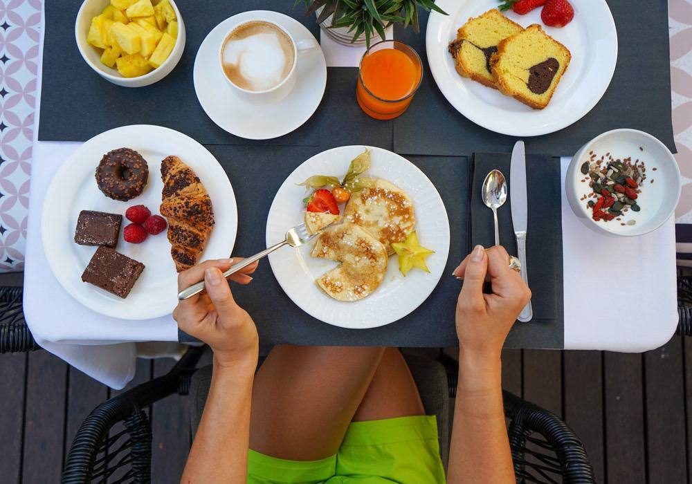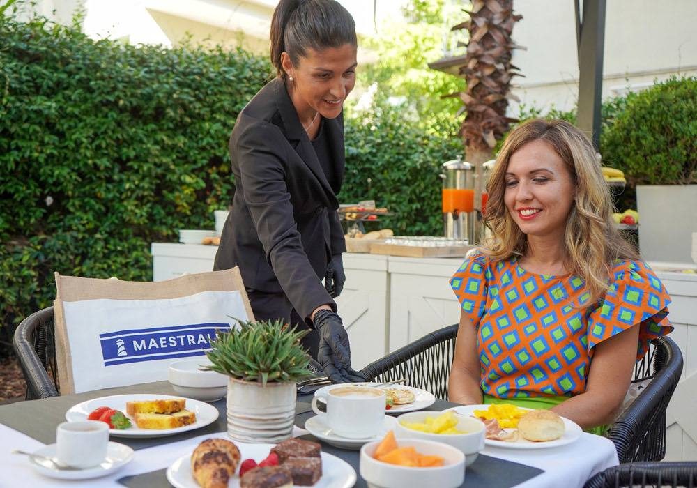 Al Suite Hotel Maestrale di Riccione si mangia proprio bene, ve ne accorgerete dal risveglio. La colazione è il nostro biglietto da visita, il primo assaggio della qualità che ritroverete in ogni pasto. Raffinata pasticceria fatta in casa, centrifughe e spremute fresche, marmellate artigianali, e tante proposte salate oltre ai prodotti classici di caffetteria. Potrete gustarla in camera se vi piace prendervela comoda, in giardino durante la bella stagione o in veranda se preferite iniziare la giornata respirando il profumo del mare, fino alle ore 11 😉